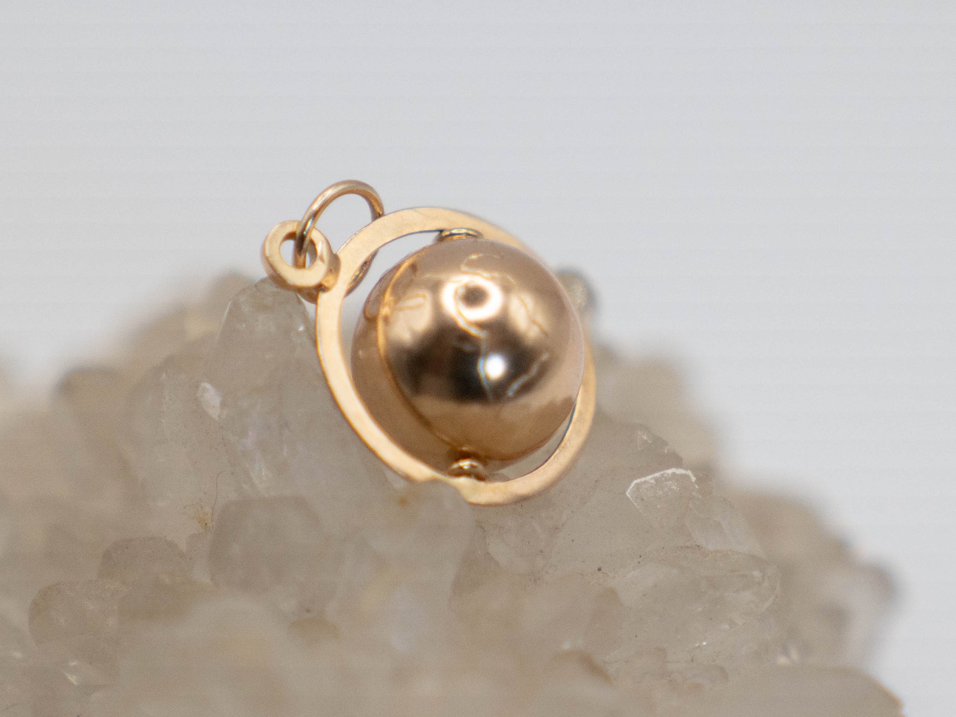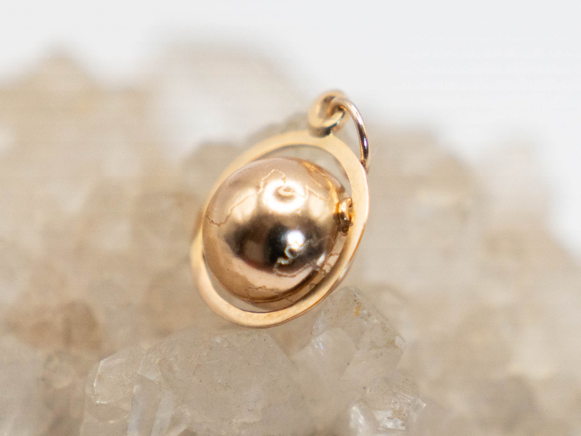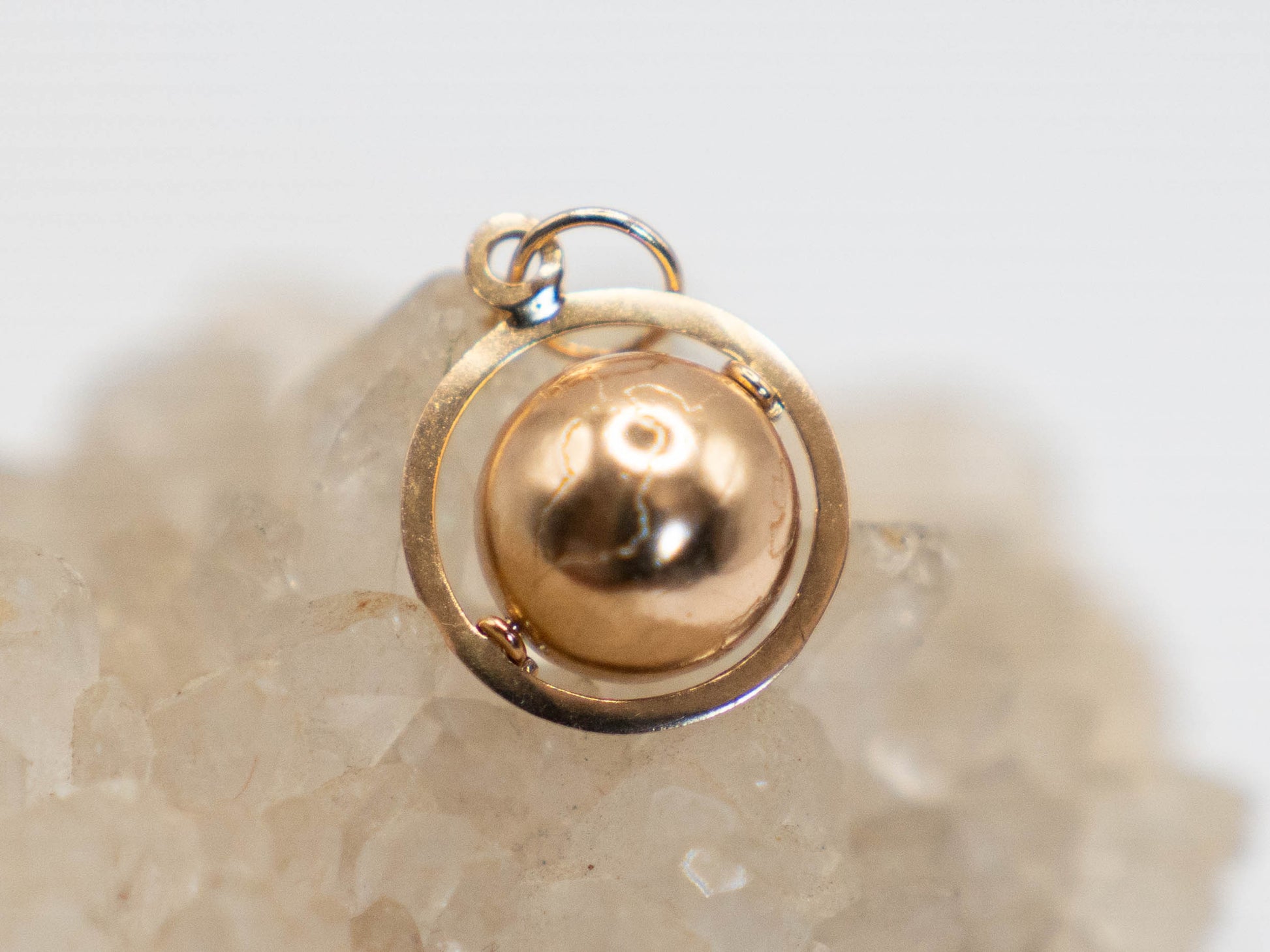 This unusual 9 carat gold spinning globe has been transformed into a powerful love talisman. Globes symbolise the interconnectedness of all things and remind us of the bigger picture and the infinite possibilities available to us. This talisman is a beautiful companion in life to remind you of your love for yourself and your unbreakable connection to the universe. Especially fitting for someone who would like to call in an international aspect to their life and loves.