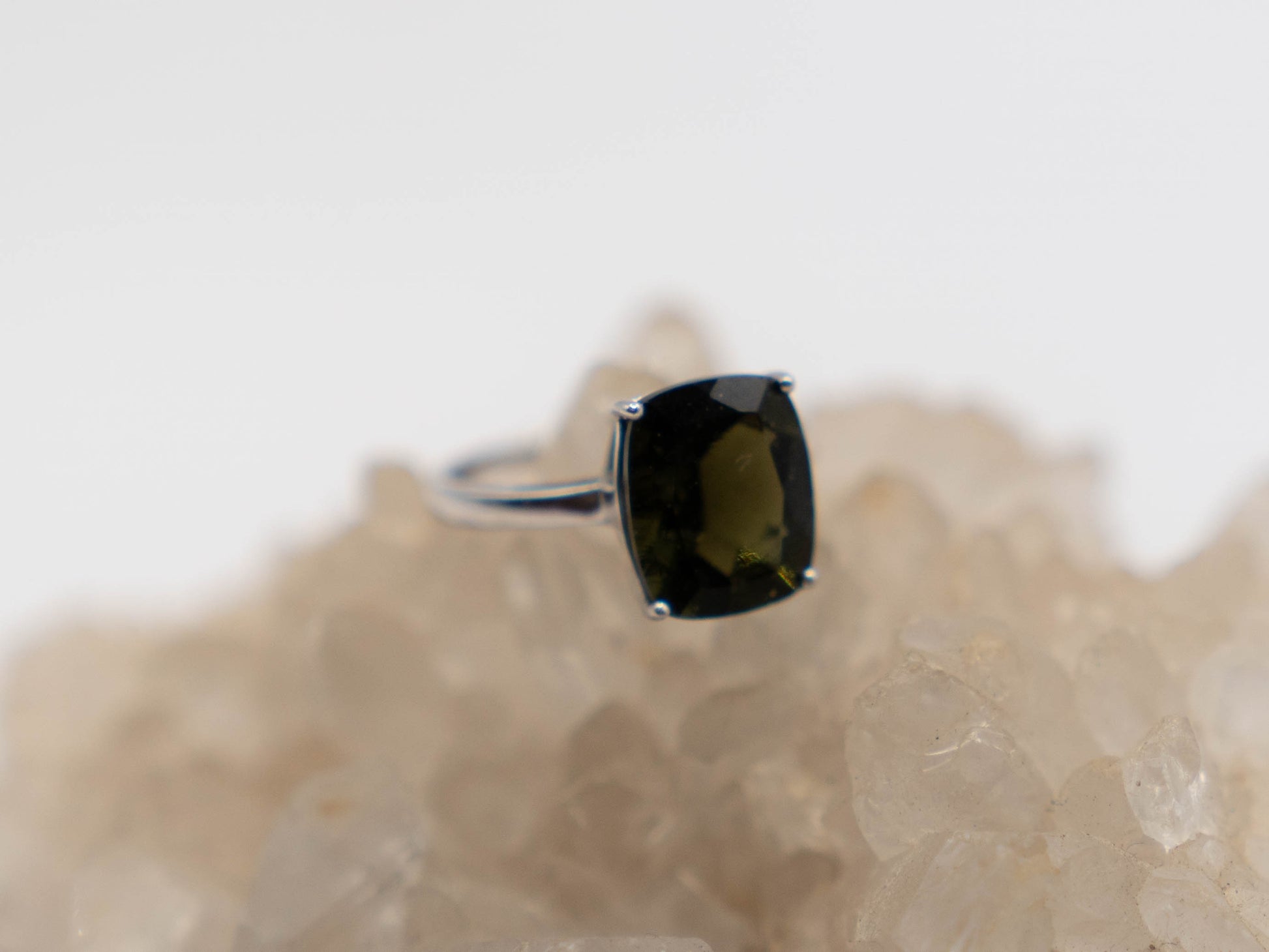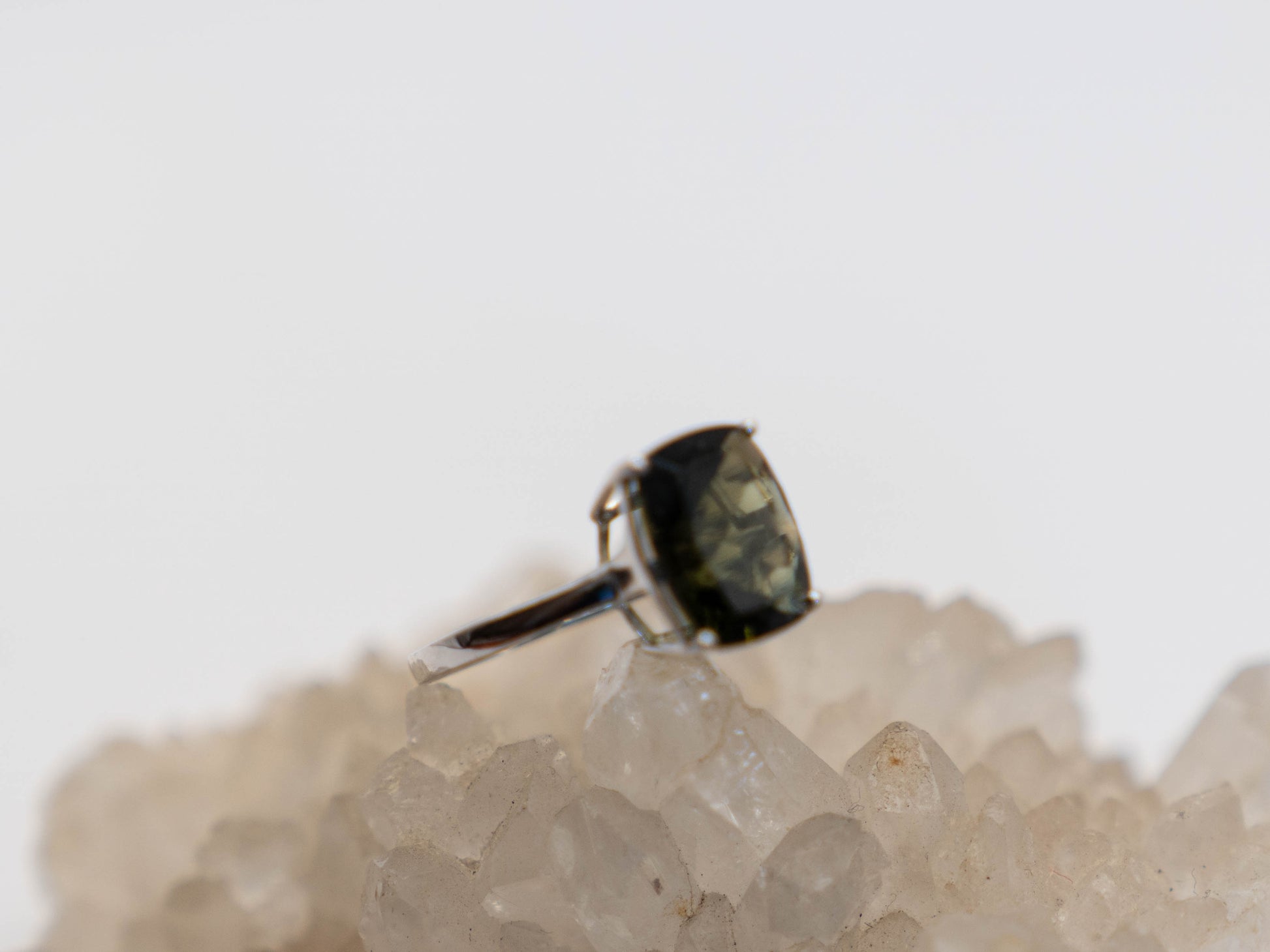 2.14grams sterling silver and Moldavite. US size 5, suitable for resizing.