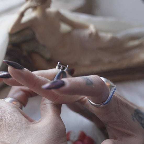 Moldavite is one of the most talked-about, controversial and powerful crystals on Earth, partly because it is not from Earth. Well, technically it is created by the earth when a meteorite from deepest space hit the planet, the force and heat melting the minerals including quartz, and forming the tektite. A stone of profound and radical transformation, moldavite will work with you to shift you out of patterns that are not in your highest interest. Beware, although these shifts are always for your highest good, they can sometimes be violent and immediate. This piece is set in sterling silver and has been transformed into a powerful money talisman to help you shift out of unhelpful limiting narratives and behaviours around money.