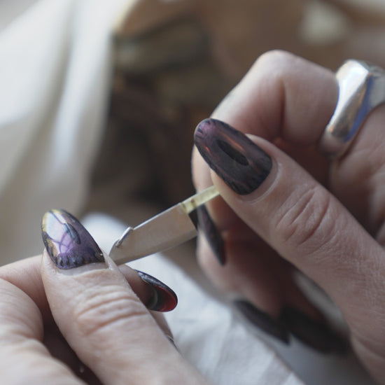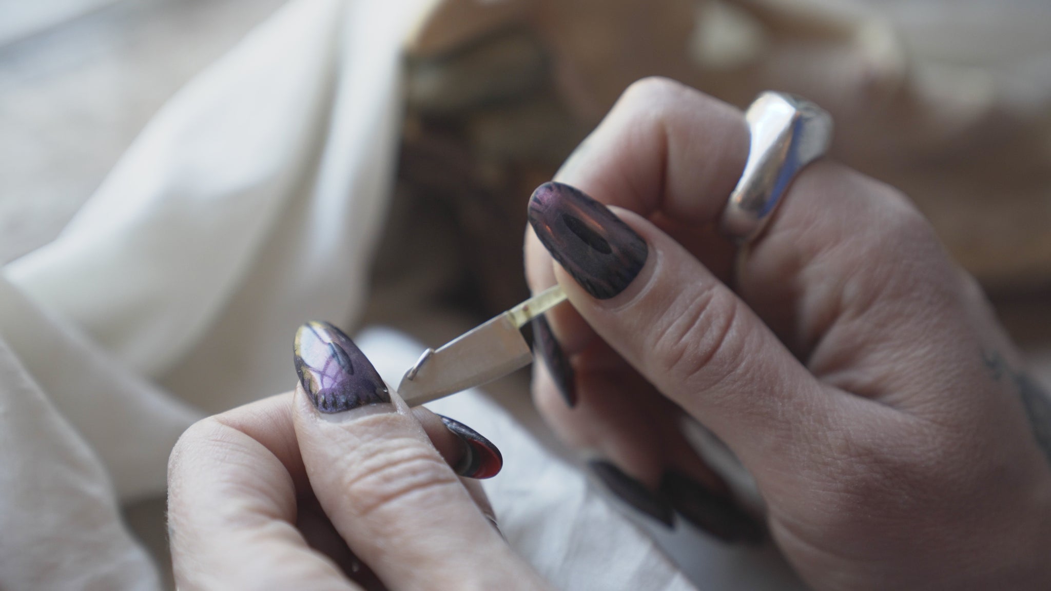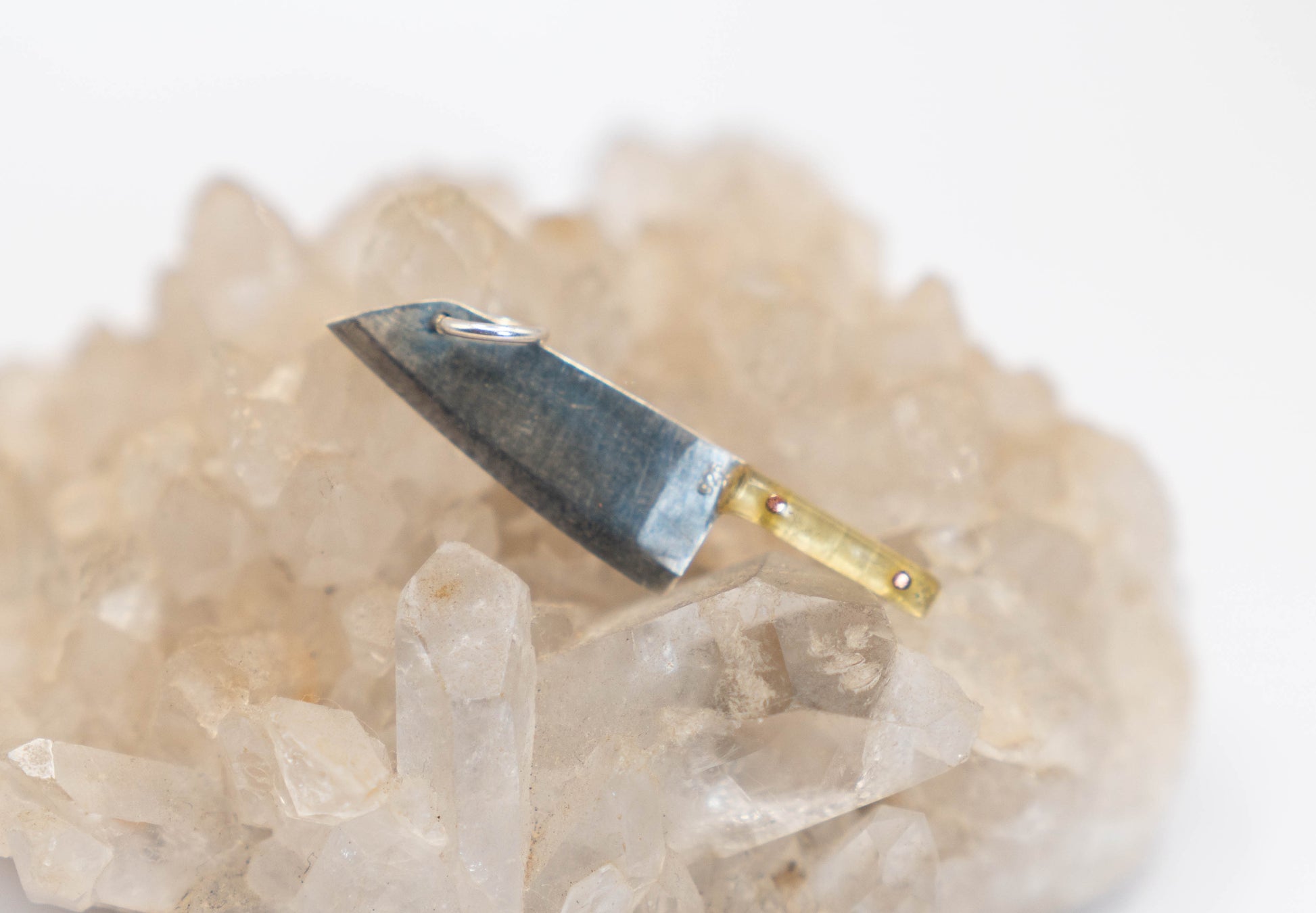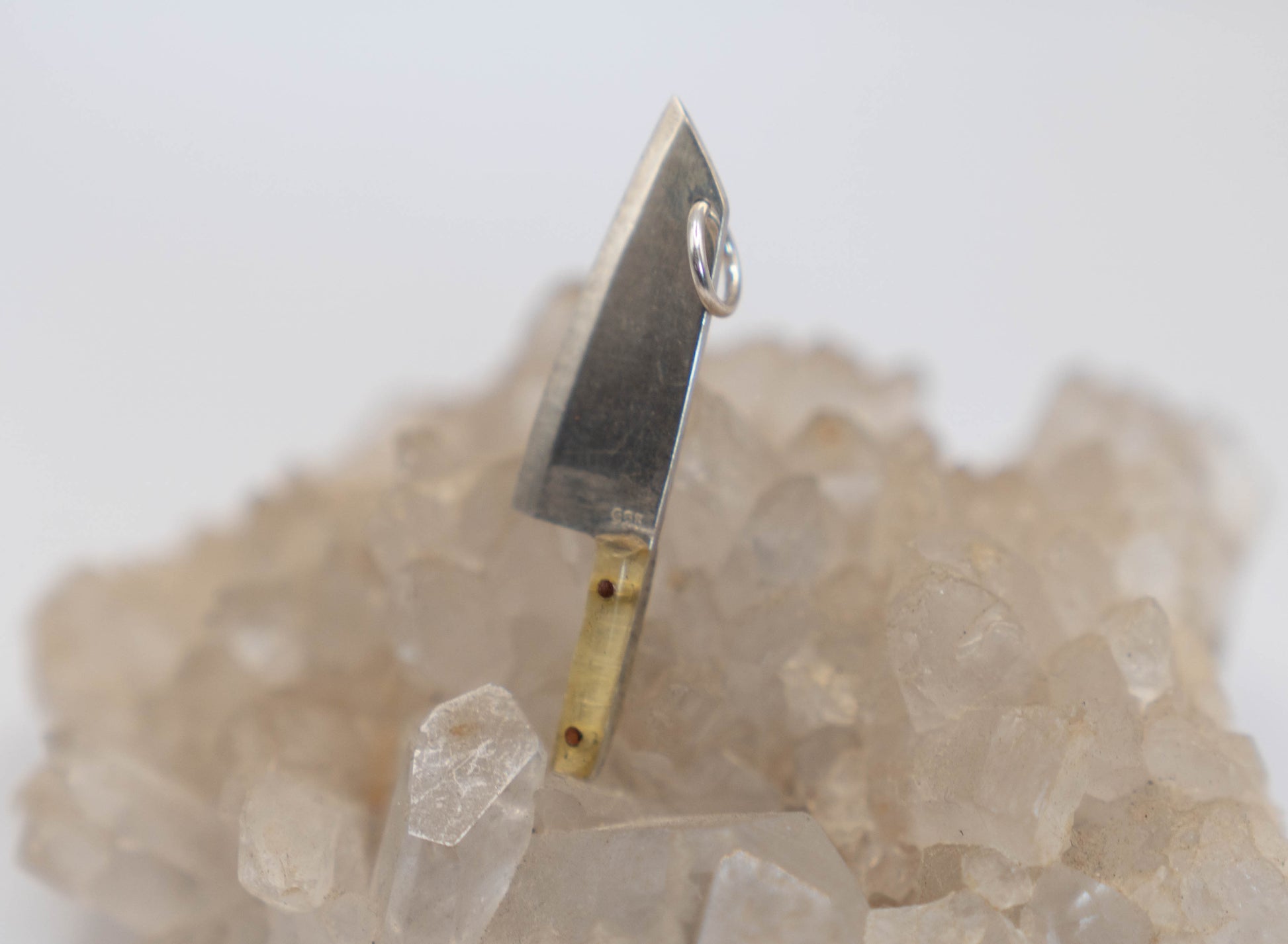 Large hunting knife with amber handle, solid silver blade. Nothing says ‘Don’t mess with me’ like this knife amulet! Even before its intentional and ritual transformation into a protection talisman it gave off powerful protective energy. This ritual knife brings the energetic gifts of strength, resourcefulness and the ability to provide and protect. Historically, hunting knives were gifted as a rite of passage and so this talisman could be particularly suited to you if you have been in a liminal phase and are ready to emerge into the stage of your evolution.