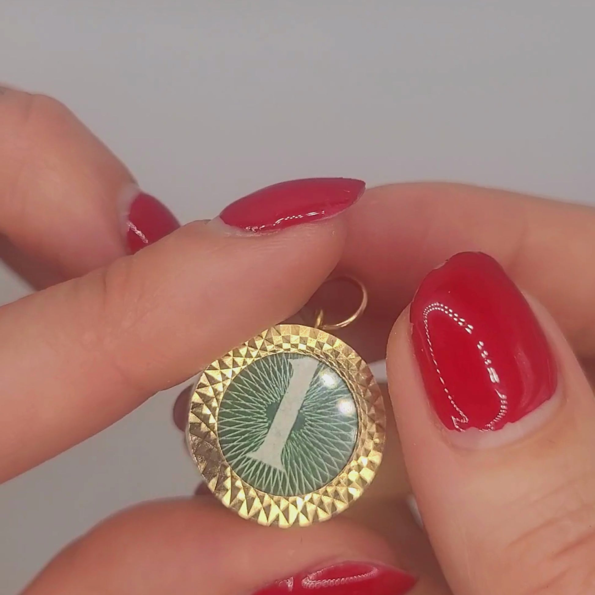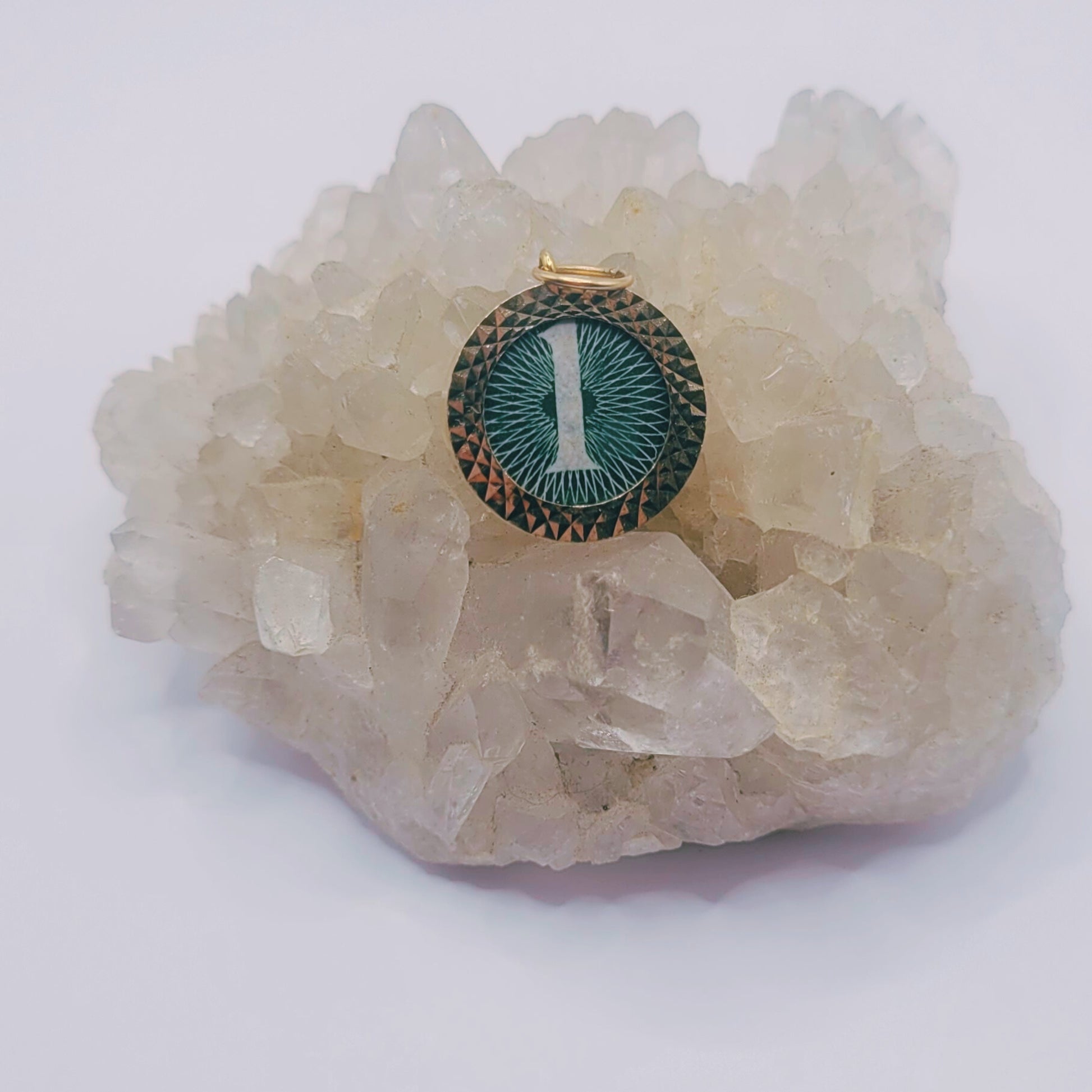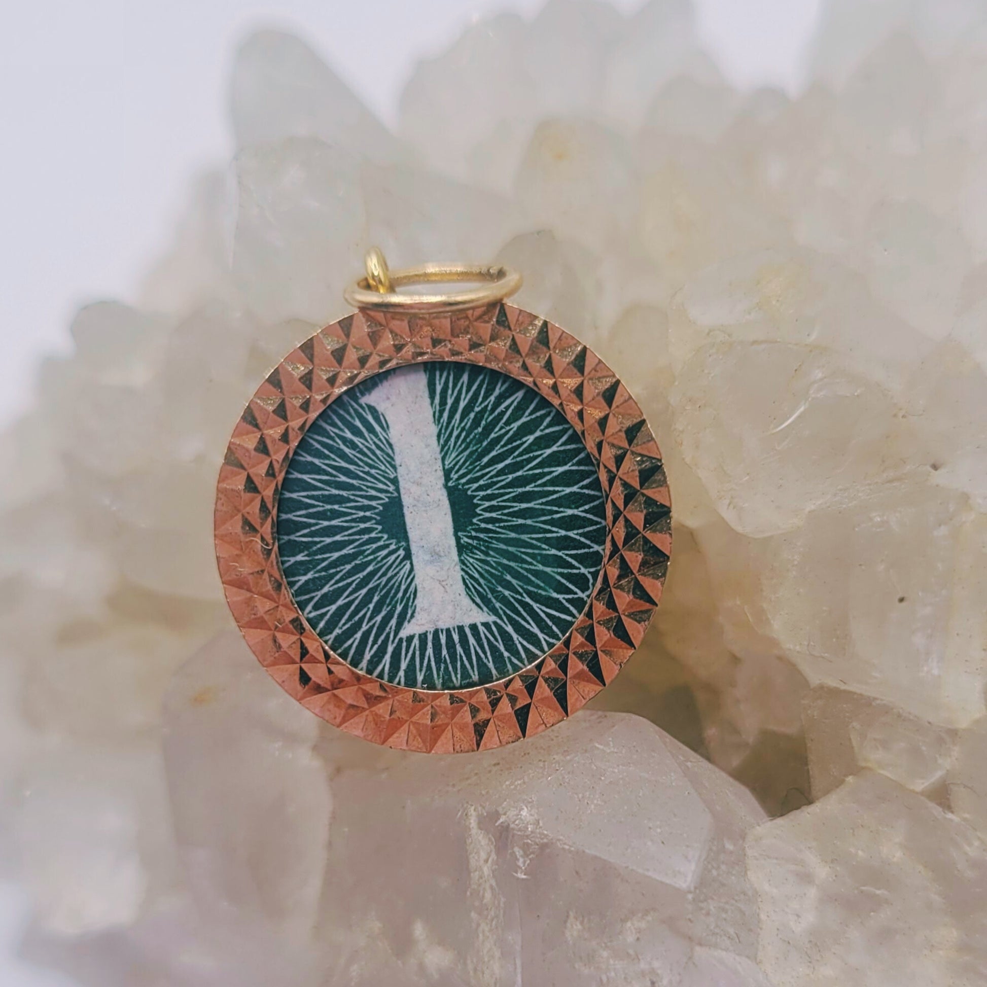 This is a vintage genuine 10 Shilling British note inside an ornate 9ct gold case. You can open the back of this talisman up to access the note (we don’t advise you do this; speaking from experience, its impossible to get it back inside!). We have never seen a piece like this before. Pieces like the one used to make this talisman were carried by women as 'emergency money'. Carrying it meant that one was never without money. This energy of always having money is a powerful magickal charge, and makes these money talismans extremely effective amulets on their own, even before the intentional and ritual transformation into a money drawing talisman.