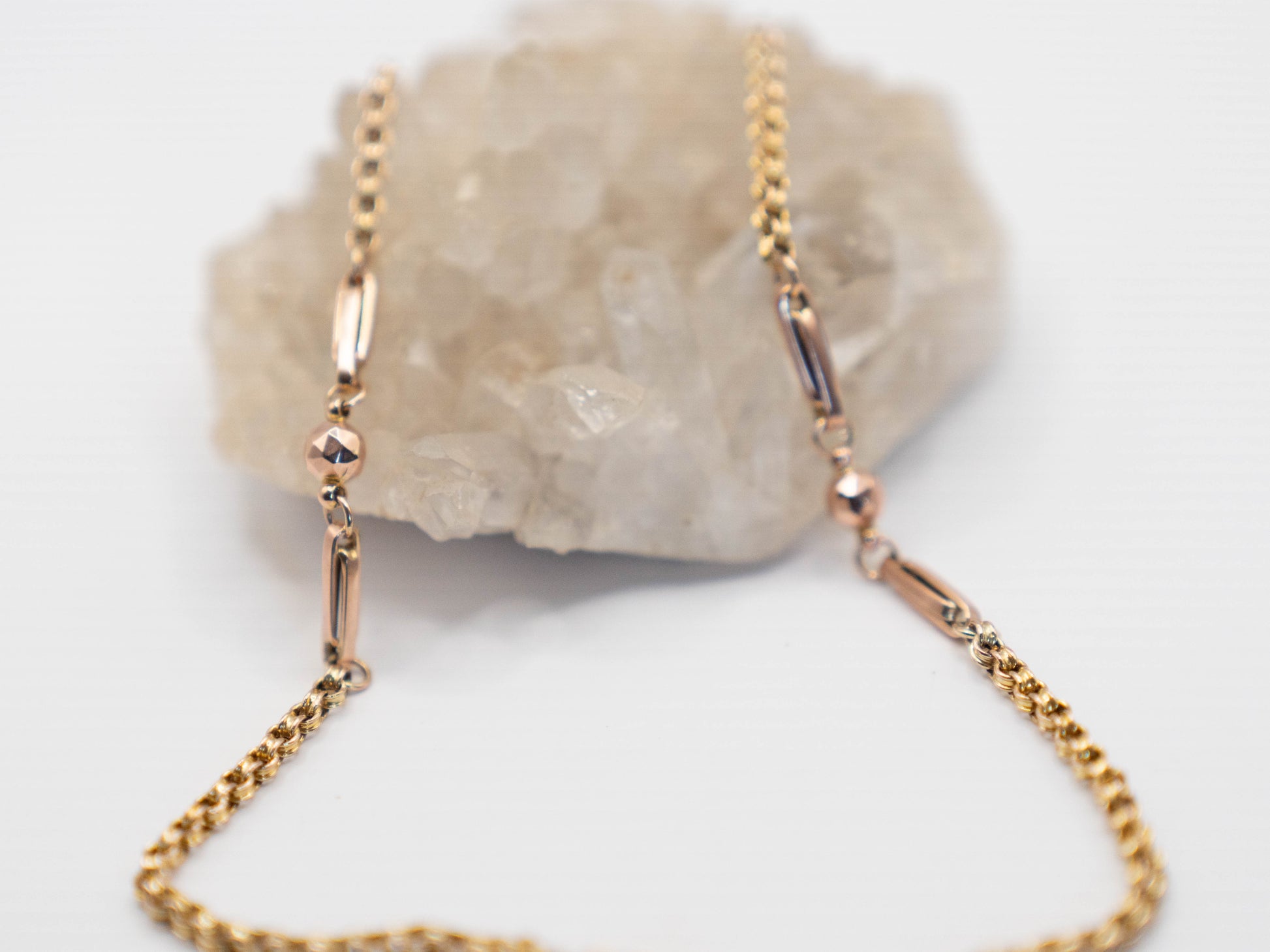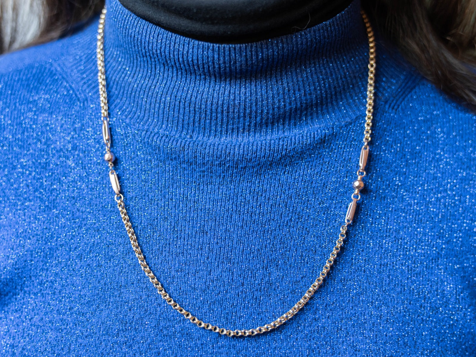 This can be worn daily, but care must be taken when taking it on and off, and is not strong enough to be slept in. I have a few of these antique chains and their age and delicacy mean that they need to be worn alone and with care.