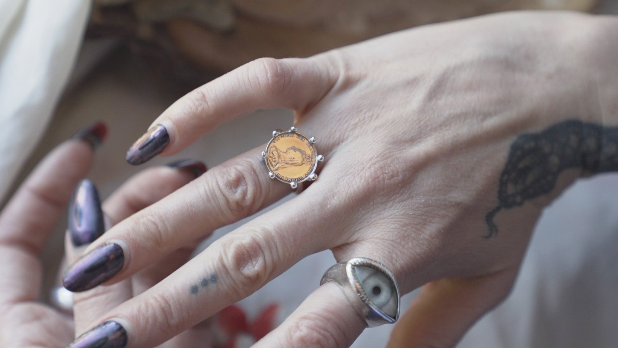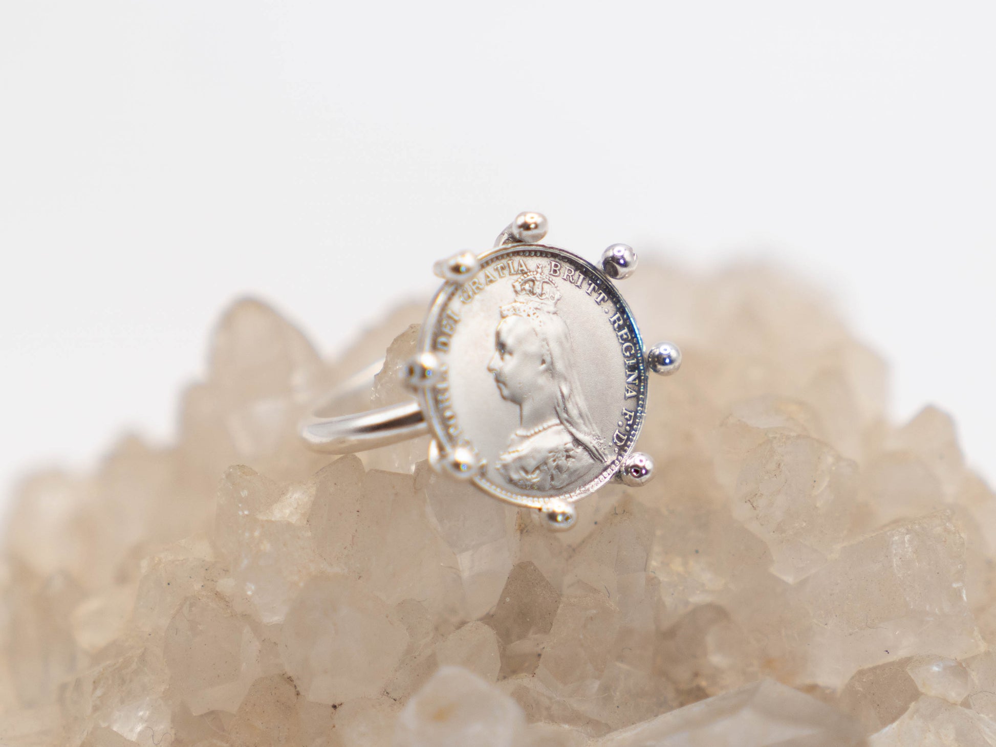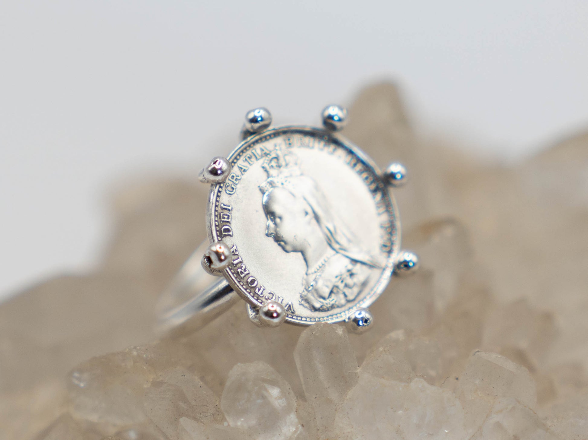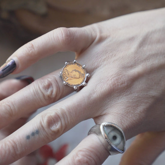 This money talisman ring is made from a true Victorian thruppence piece - a solid silver coin minted between 1893-1901. These coins were made out of solid silver and used as ‘Maundy Money’ - once a year the Monarch would give them out as alms to the poor. The poor they had created. This piece has been ritually cleansed of that energy and repurposed as a money talisman to bring you in the same level of delusional sense of entitlement to wealth that the British Monarchy and especially Victoria, had. Take back your money, this talisman will help you.
