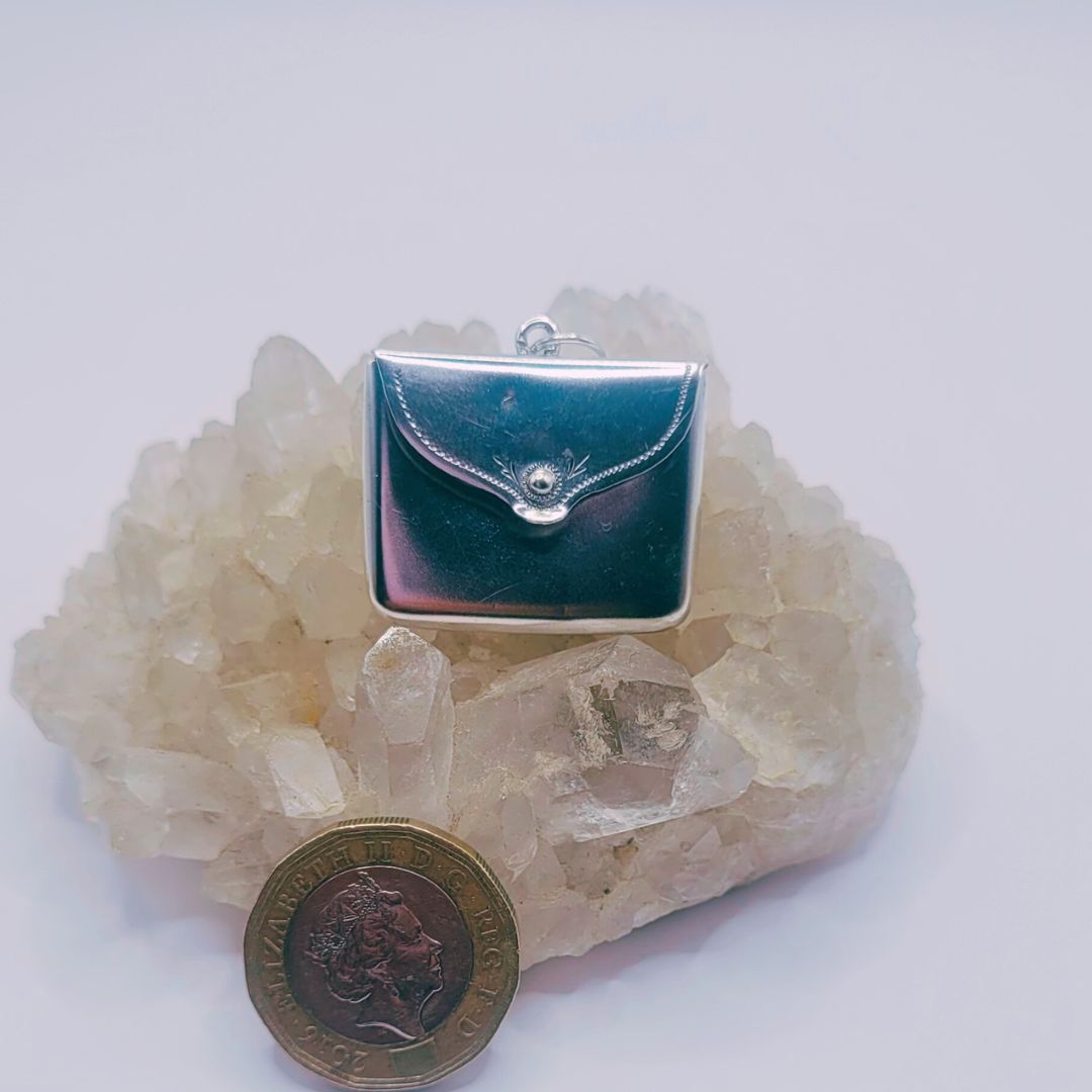 This rare piece would have been worn in Victorian times by the lady of the house on a chatelaine to store postage stamps which were used as currency. Continue this tradition by folding up a high value note to keep inside or use it as an unusual locket to store a precious photo or lock of hair. Transformed into a powerful money talisman, with this by your side you will never be without access to money.